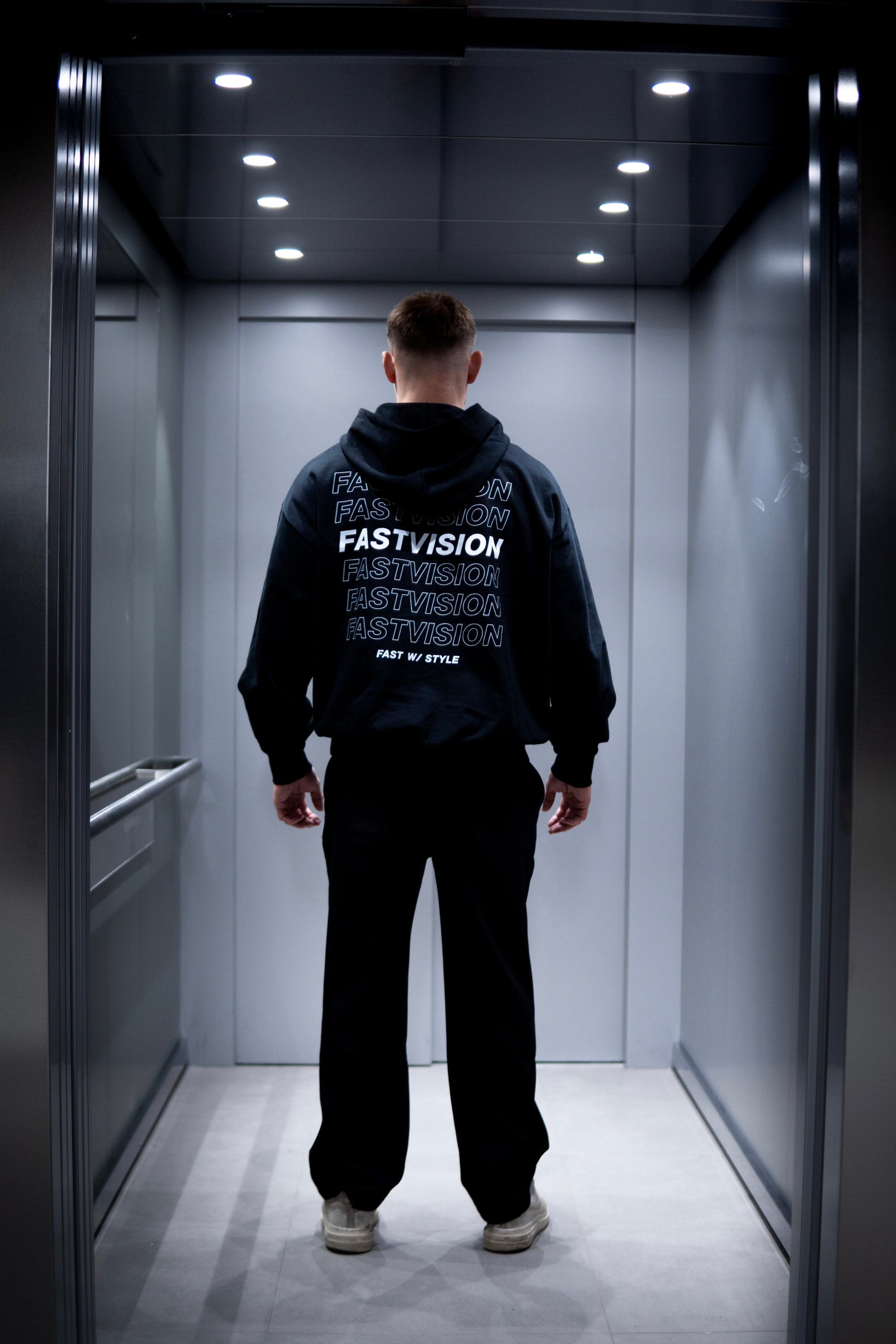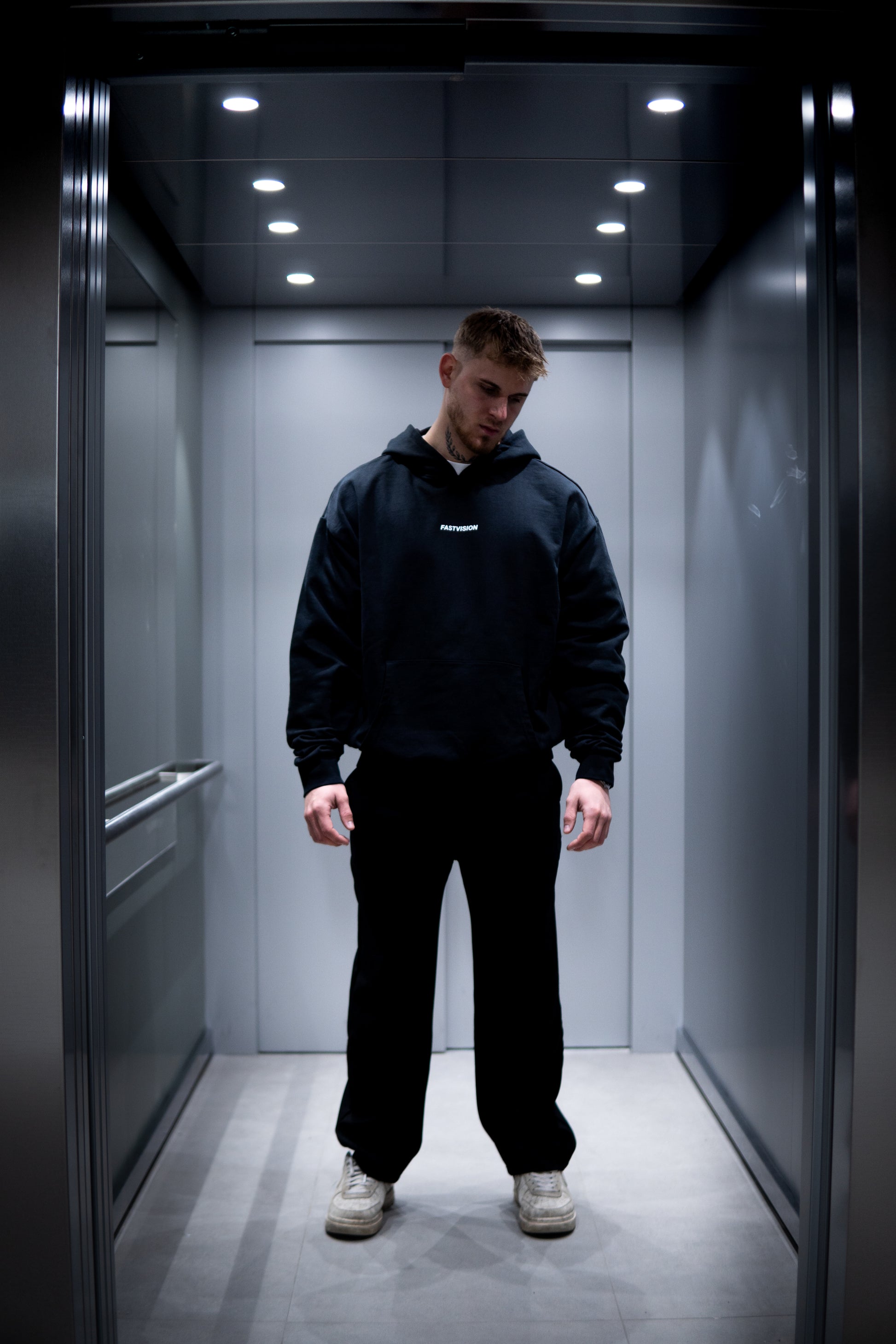 - Das Model mit einer Größe von 192cm & einem Gewicht von 89kg trägt Größe XL